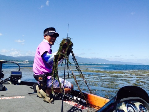 He keeps his own way of fishing here in Lake Biwa as well.