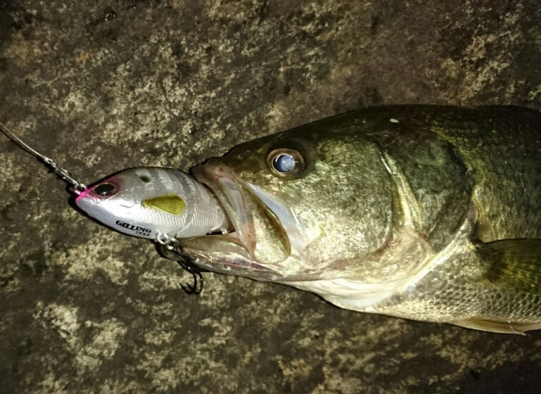 I cast my Texas rigged bait “BEAT CRAW 3 inch”.