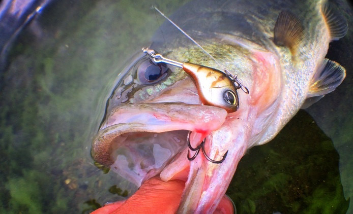 I reeled in really slowly. I felt the vibration clearly and largemouth took the bait!