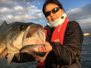 Her first time to go boat fishing.