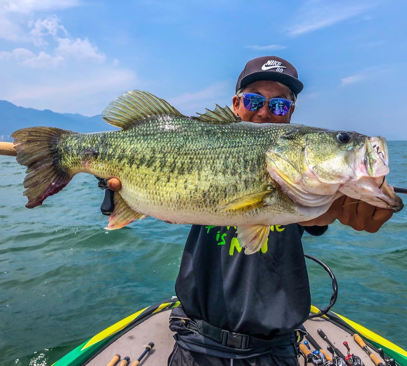 Lake Biwa fishing guide Yuho Ito caught 65 cm long largemouth bass on Bellows Gill 5.8.