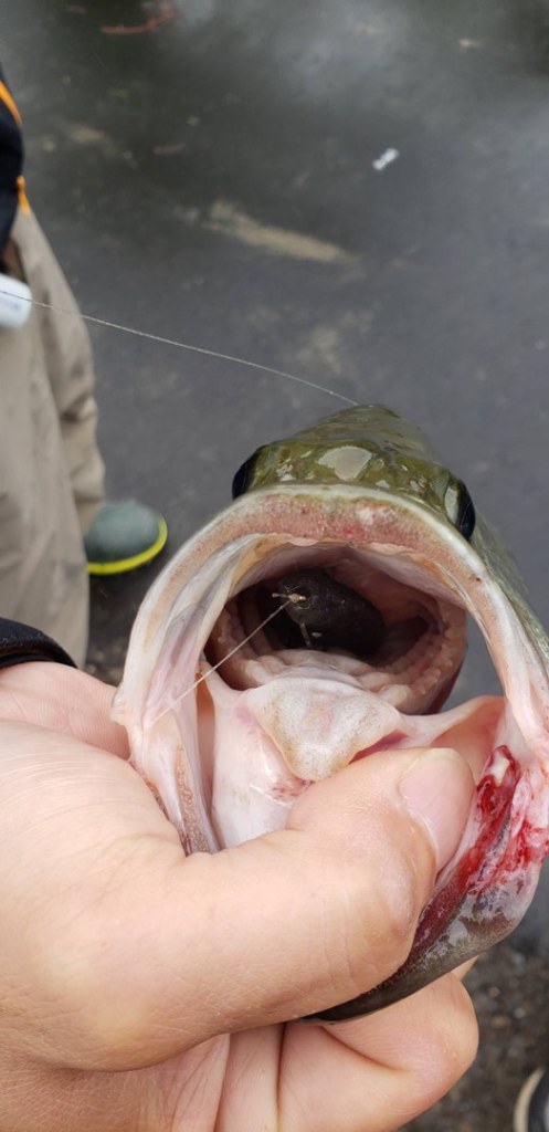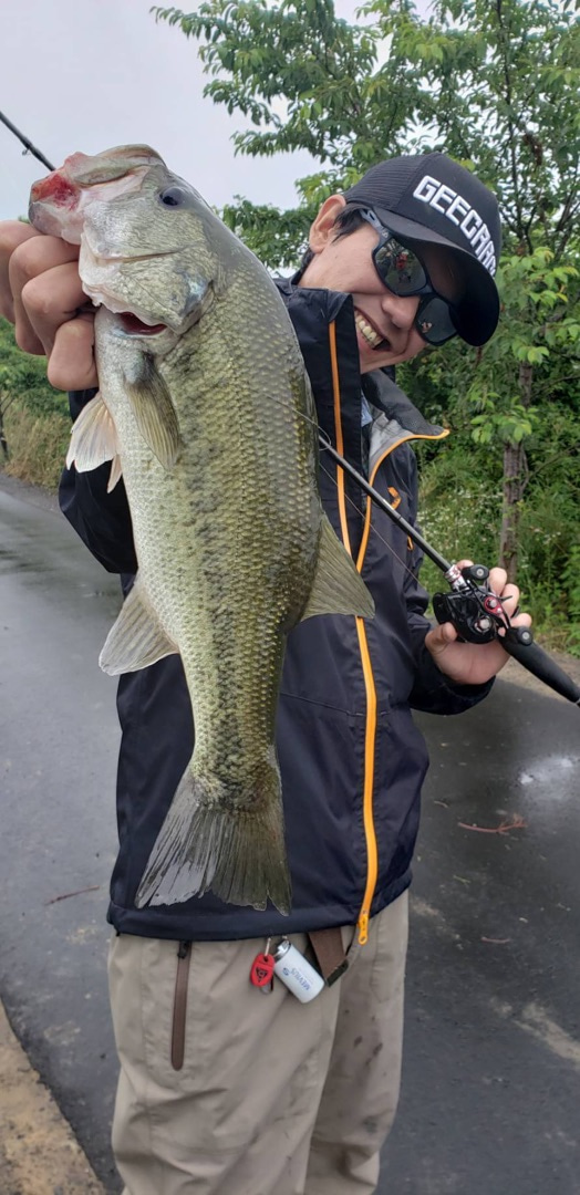 Targeted break lines.I chose RIVIVAL SHAD and cast it.Bottom bumping generated a strike.Afterwards, I found a school of bluegill hiding in the underwater structure.Cast SPIRON 2.8 into it quickly.Nice bass was easily caught!!