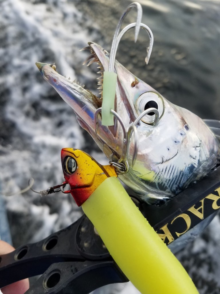 Cast TIGER DRAGON and use jerk-jerk-jerk-pause type of retrieve. You’ll catch nice scabbard fish!!It’s so much fun!!
