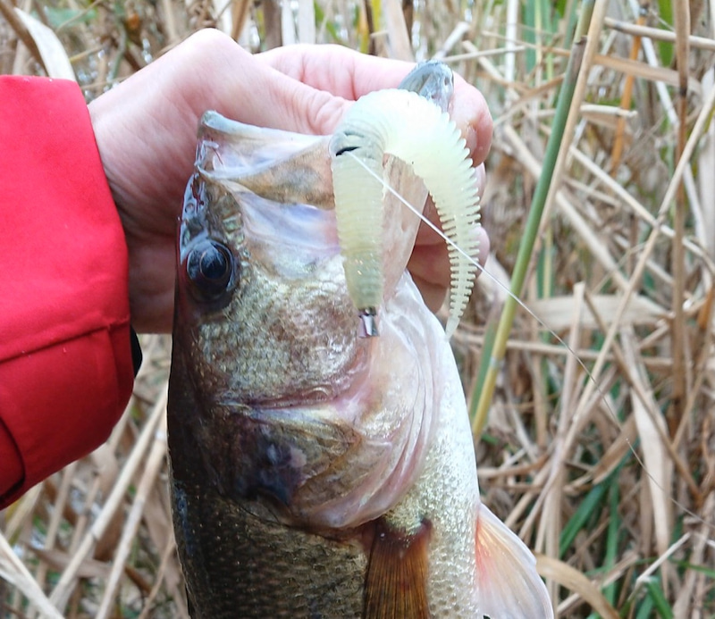 Bello-Neko(Bellows Stick 3.8″ / Neko rig) is perfect for fishing in cold weather.It is Geecrack field tester Takaaki Oya’s favorite rig.He often uses it this time of year.