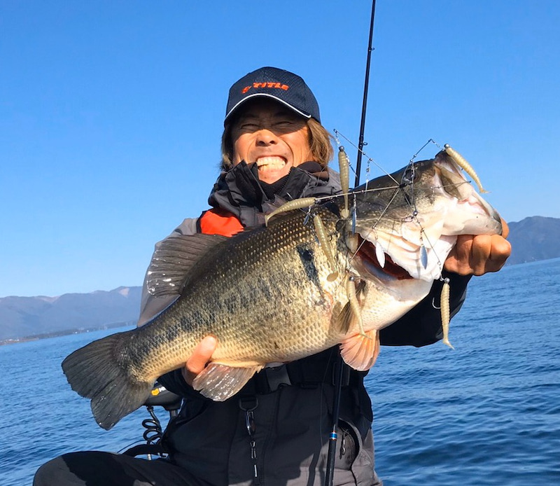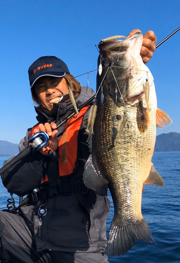 Lake Biwa fishing guide Shinji Sato caught nice big bass on Stealth 7(Stealth 7 + Gyro Star 3″ + Corn Head Blade).
